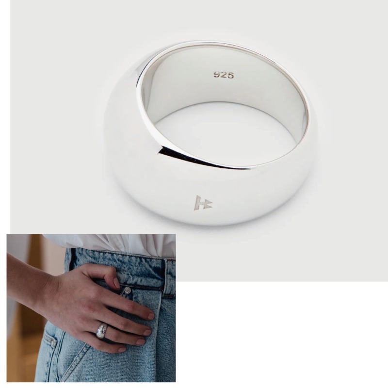 無駄を削ぎ落したフォルムとアシンメトリな楕円形状のデザインのリング。